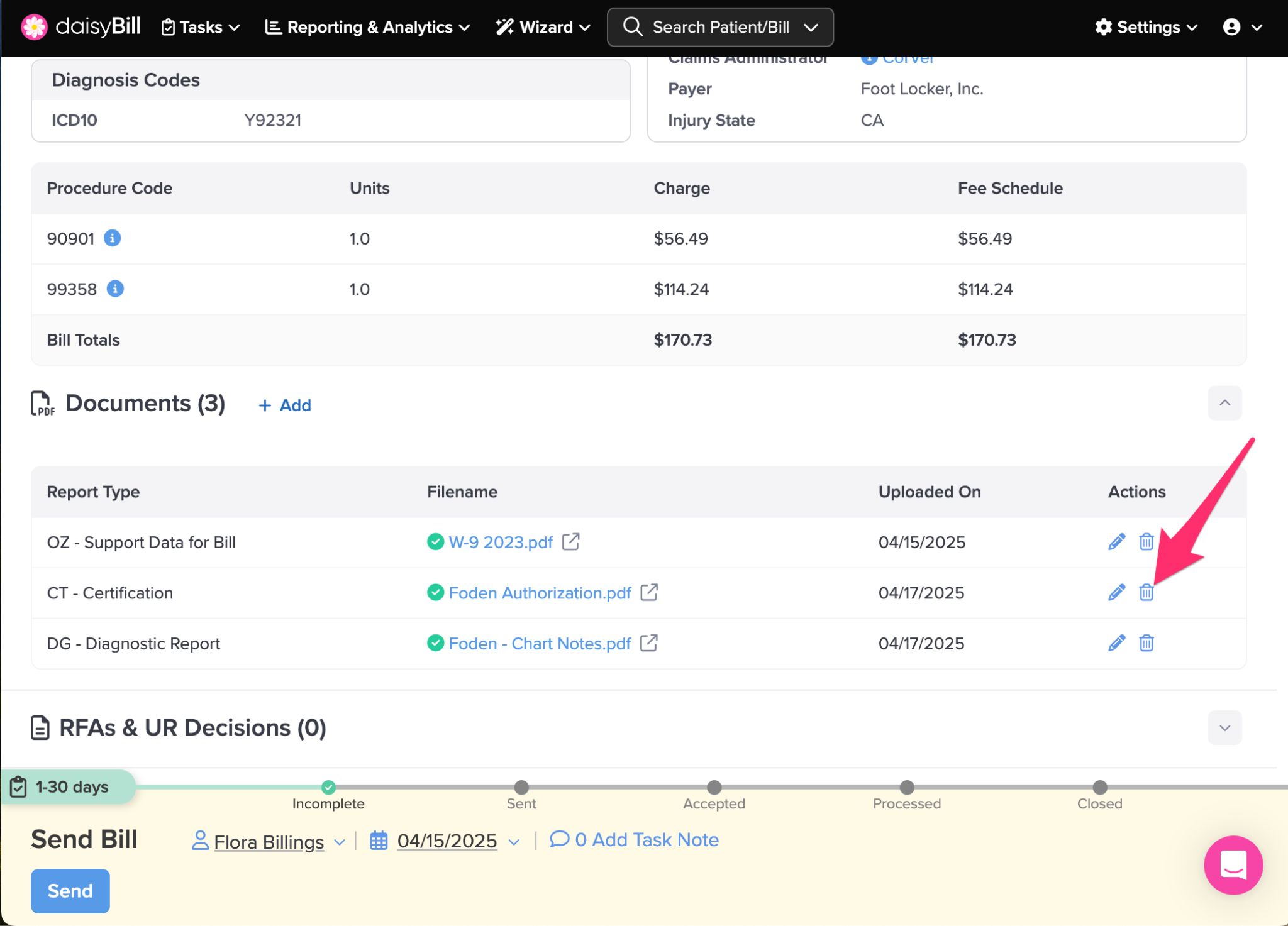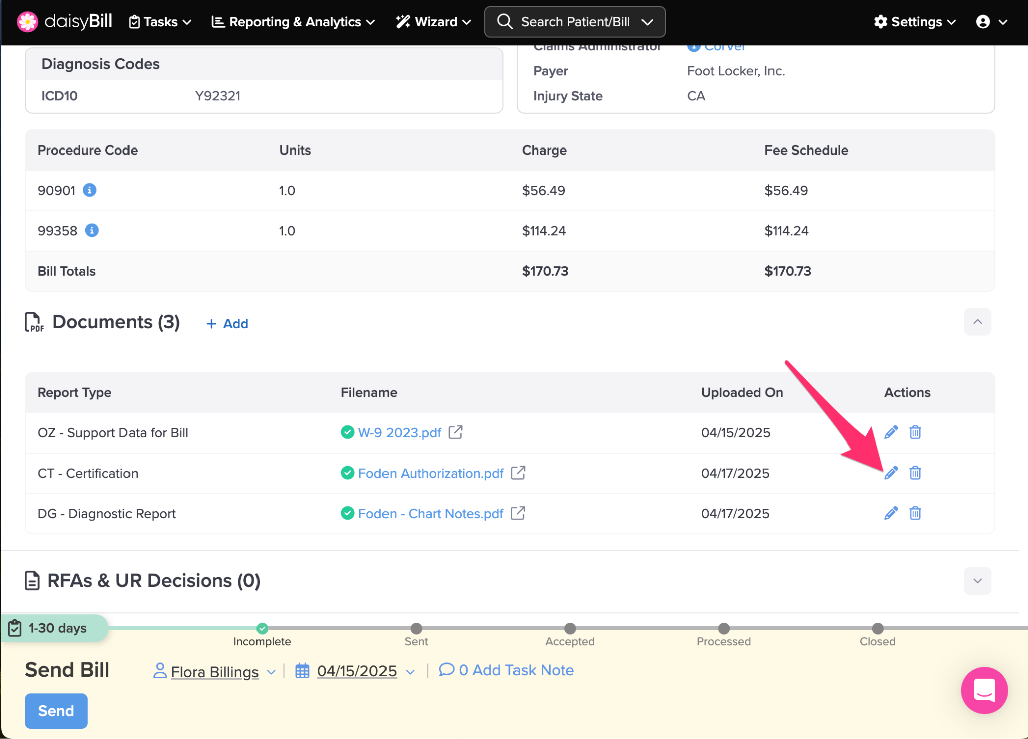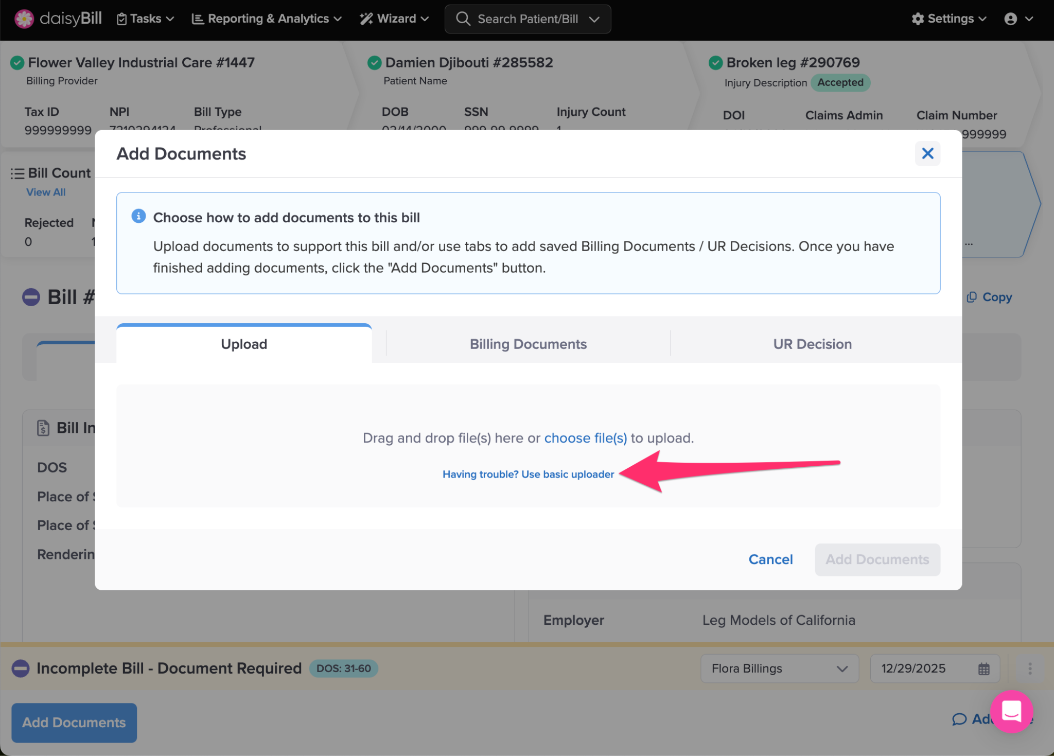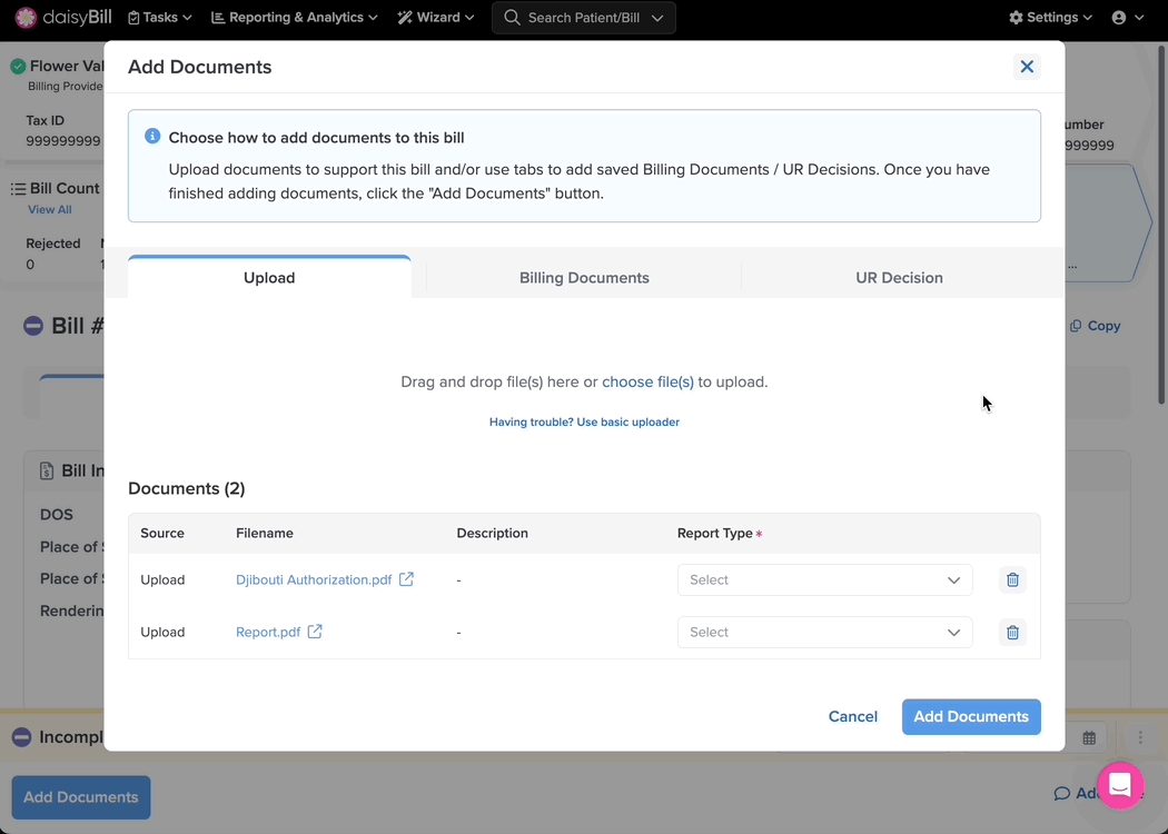 To add other document types, please see these Help Articles: Add from Document Library, Add Injury Documents to Bill, Add RFA Decision to Bill.