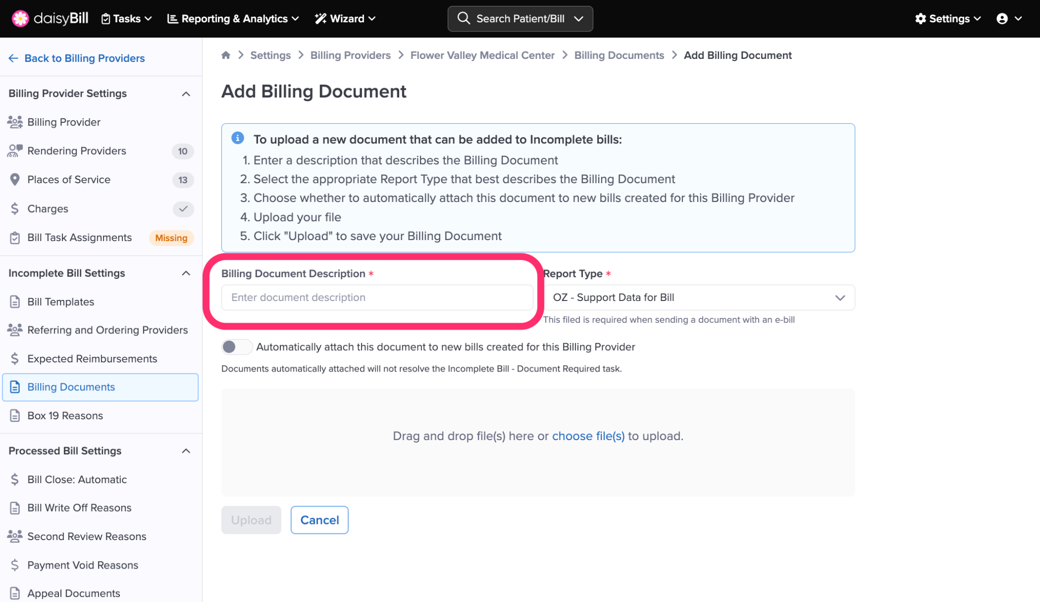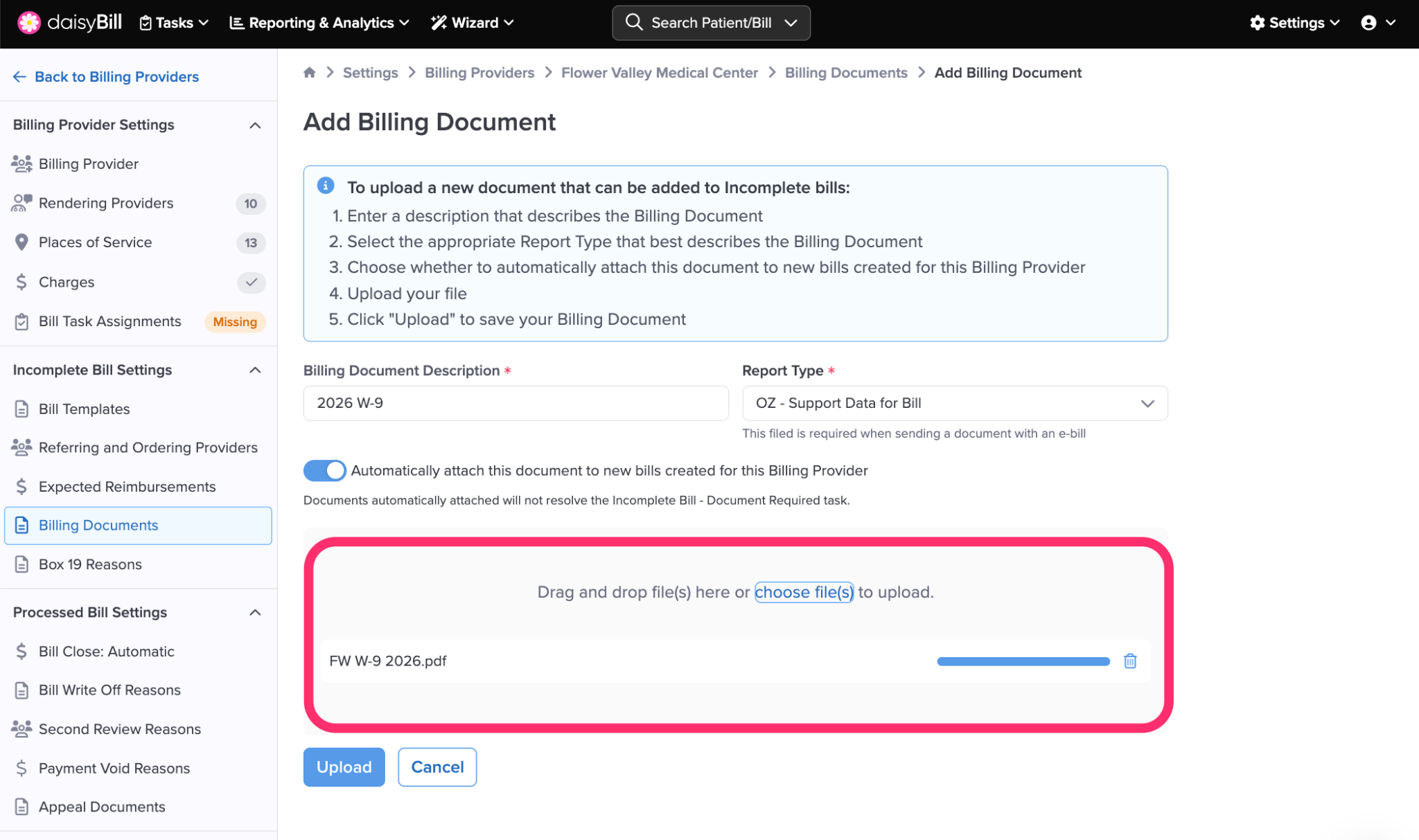 Step 7. Upload Billing Document