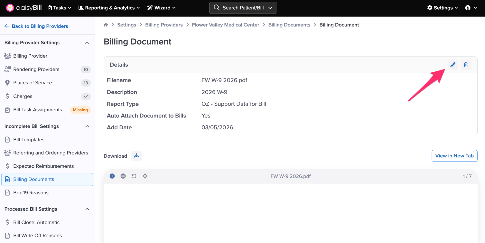 Only daisyBill Users with an Administrator role can manage Billing Documents. For accounts with multiple Billing Providers, daisyBill maintains separate Billing Documents for each Billing Provider.