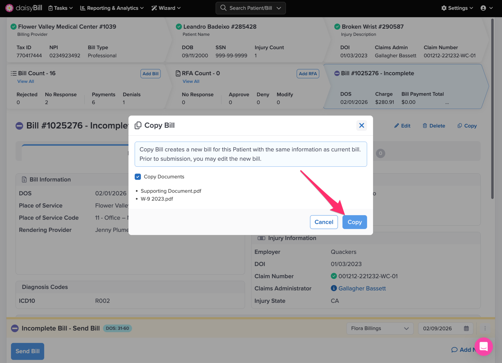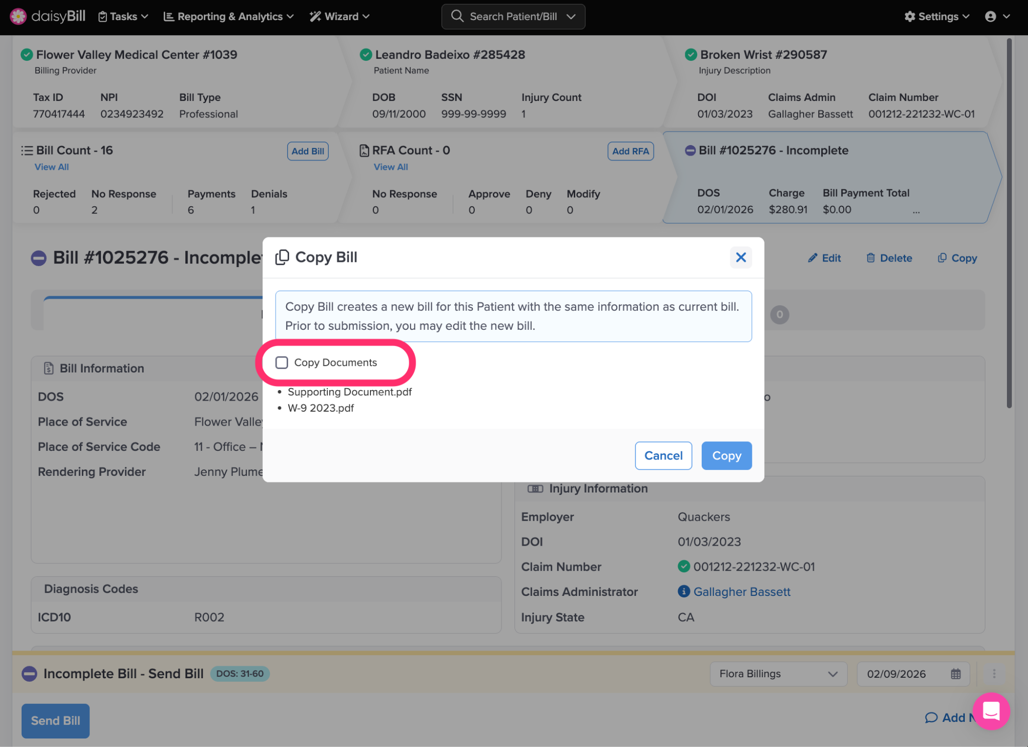 Step 2. To copy Documents with the Bill, check ‘Copy Documents’