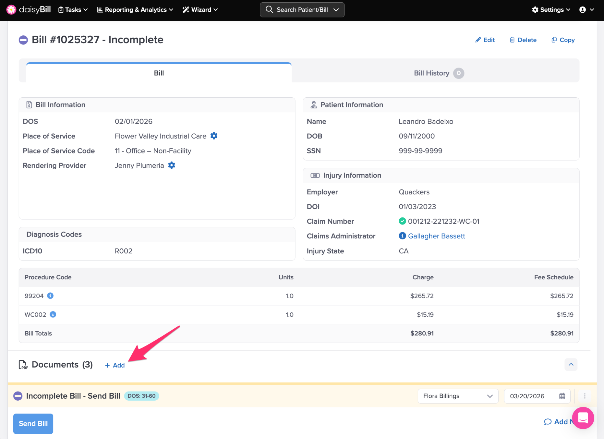 Step 5. (Situational) To submit the bill, click ‘Send’
