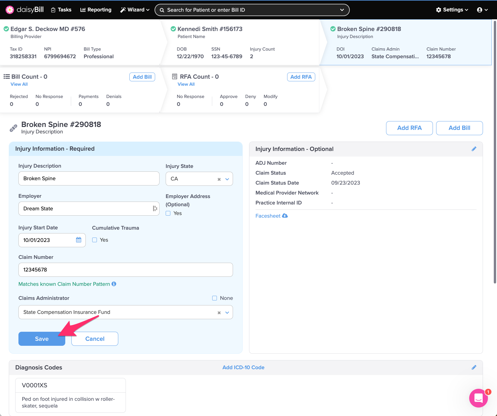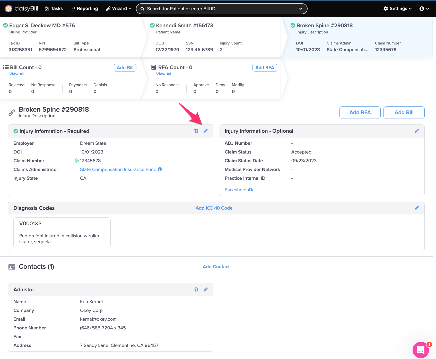 Step 1. From the Injury Page, click the ‘Pencil icon’ in the upper right corner of the section