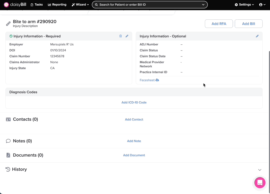 Step 2. Add an Injury Contact for the attorney, employer, or other bill recipient