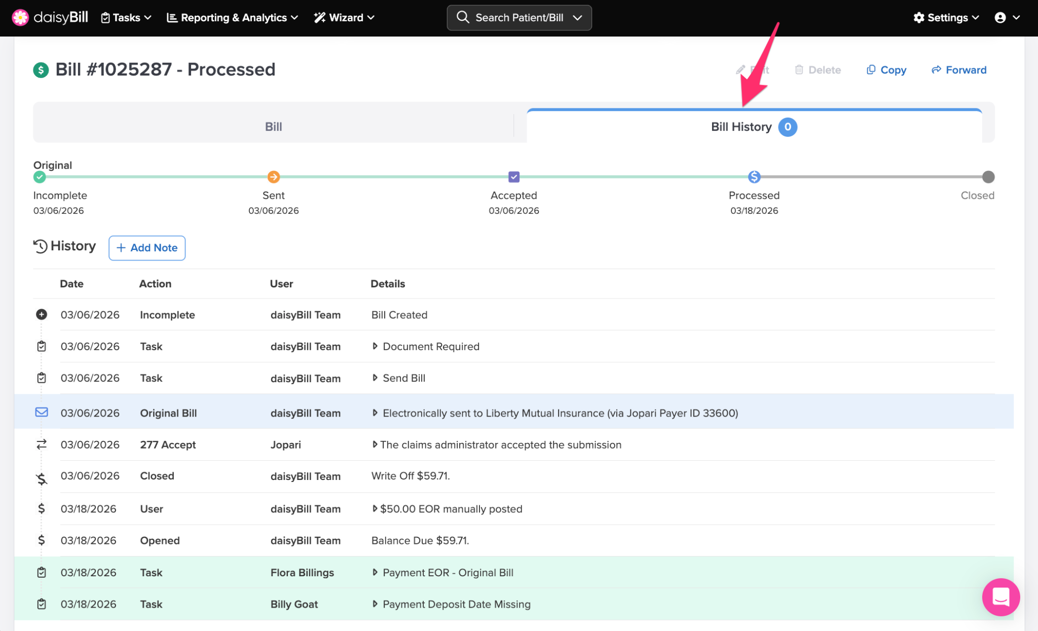 - Bill Tasks created and completed