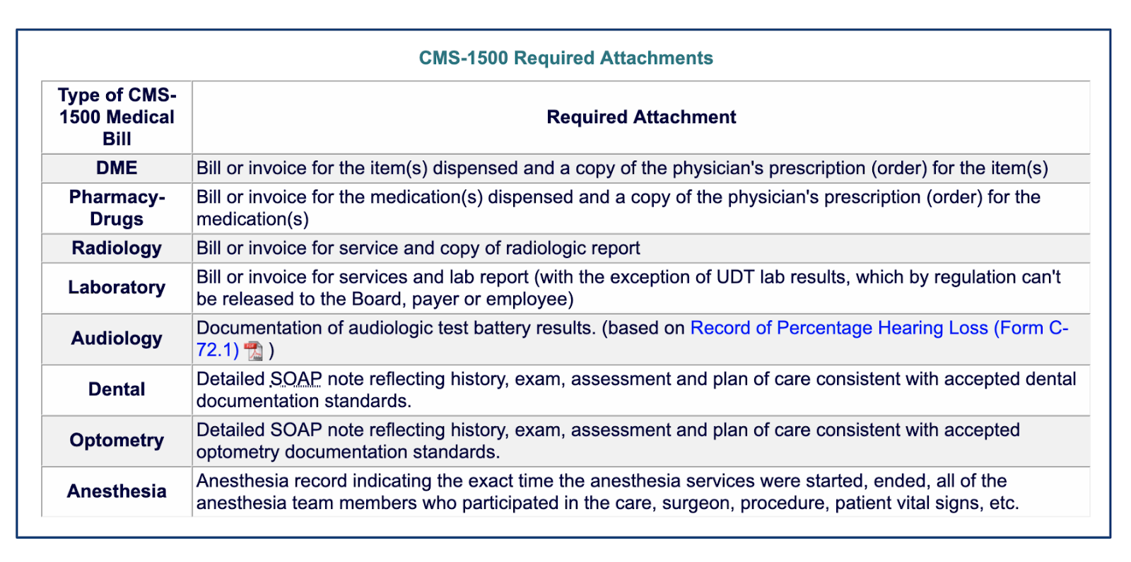 For a complete CMS-1500, the Workers’ Compensation Board requires providers to submit a Narrative Report with all CMS-1500 Forms.