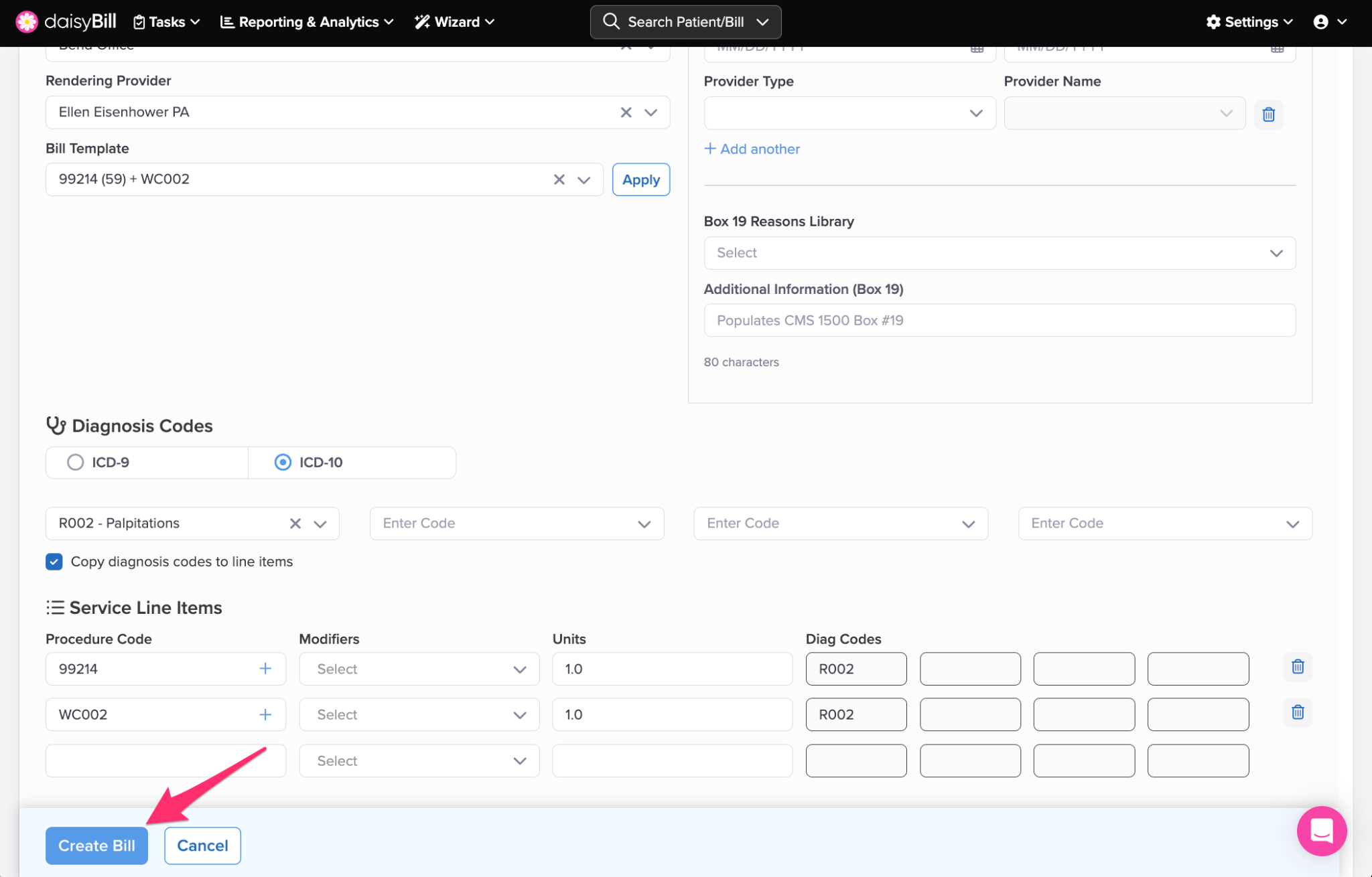 After the Billing Template populates the Bill, make any necessary edits and enter any additional Procedure Codes as needed.