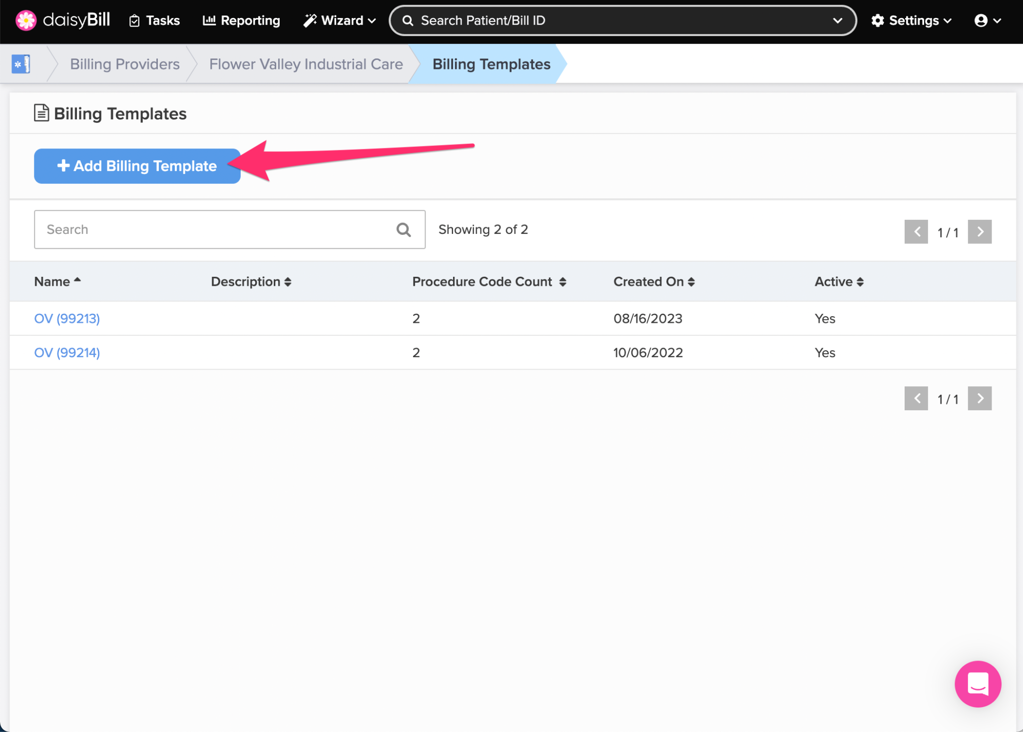 Step 3. To add a new ‘Billing Template,’ click the ‘Add Billing Template’ button