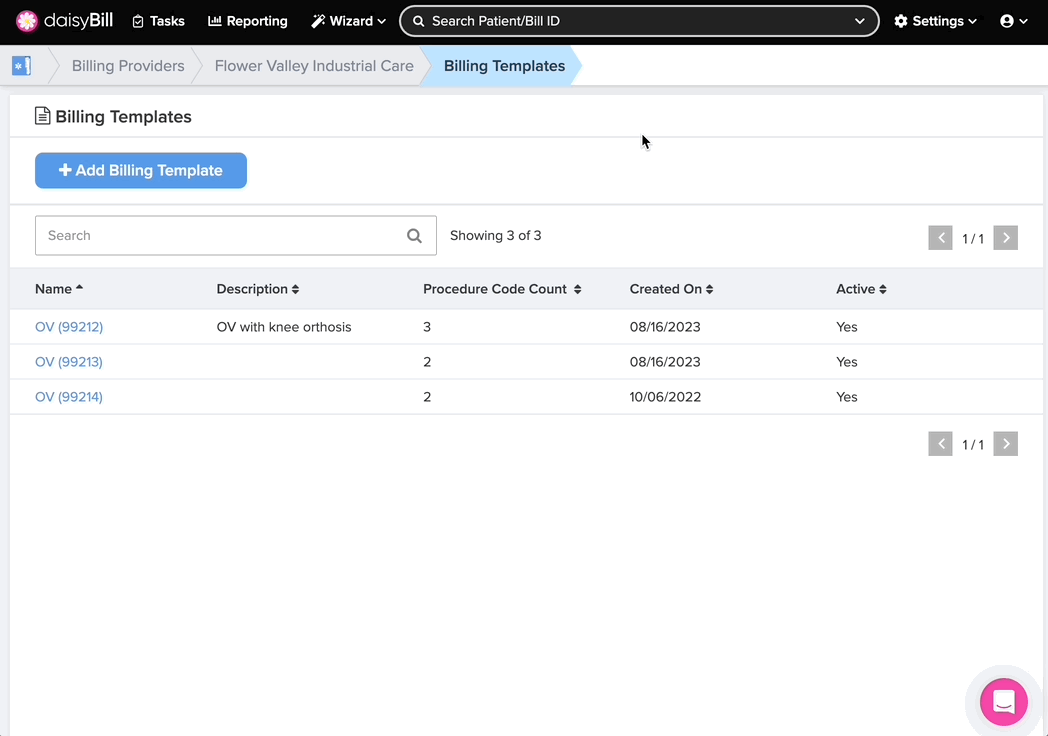 - Create a naming convention so that all staff can easily identify Billing Templates in a list.