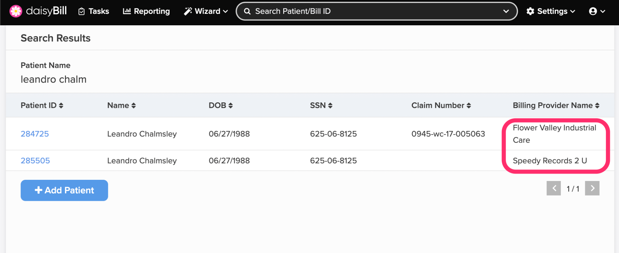 If multiple Billing Providers treat or submit bills for the same Patient, remember to edit the Patient information for every Billing Provider.