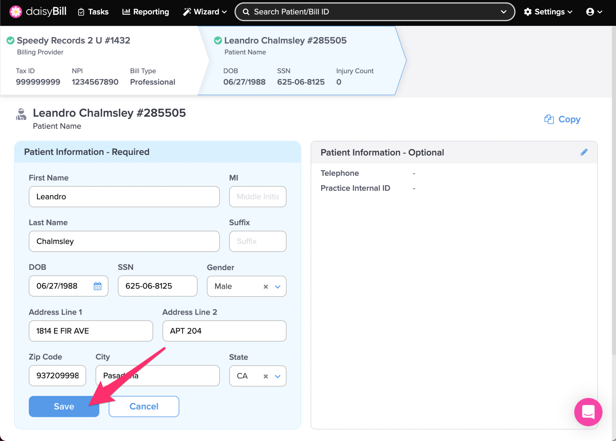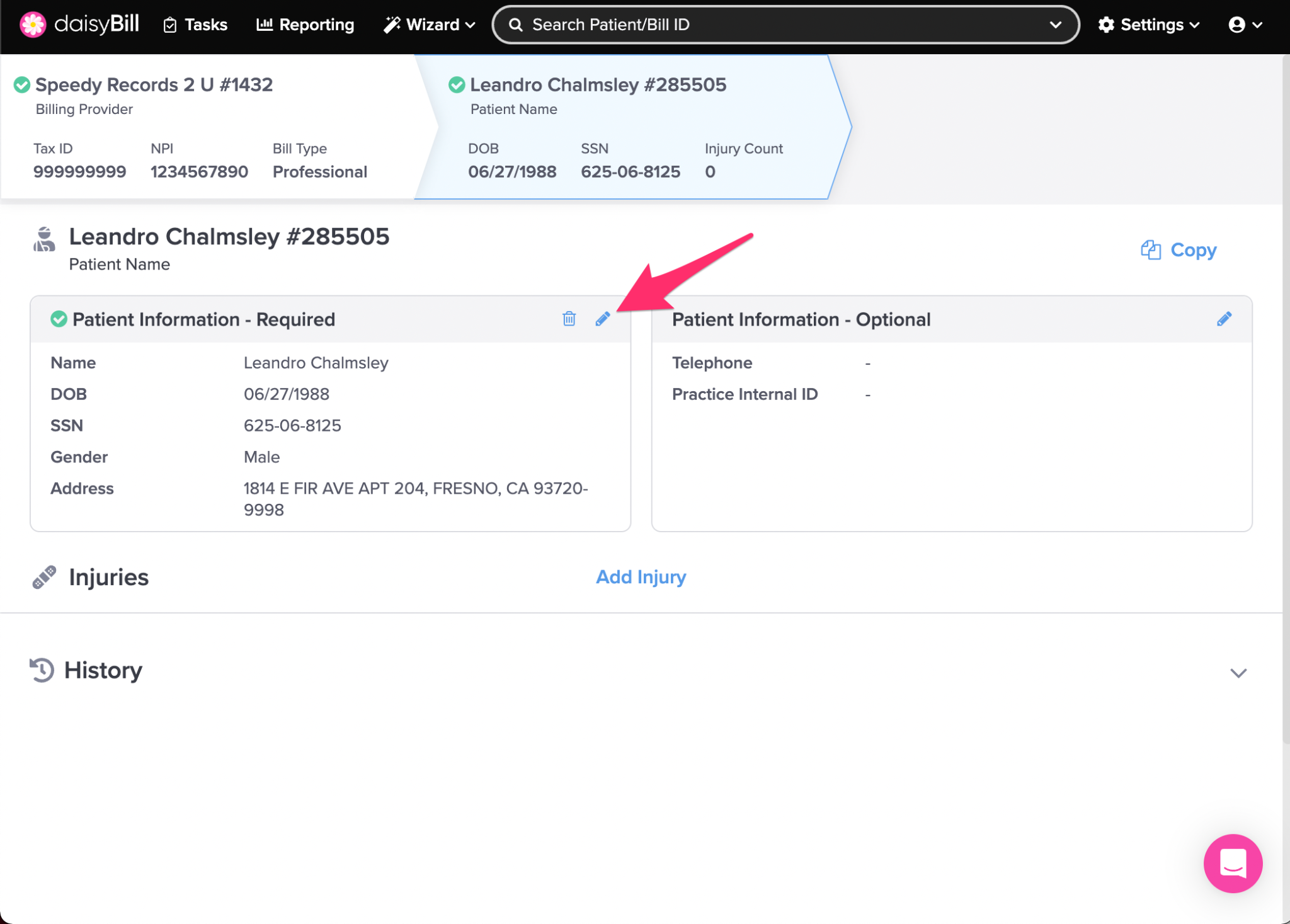 Step 4. (Situational) Edit the patient information for additional Billing Providers