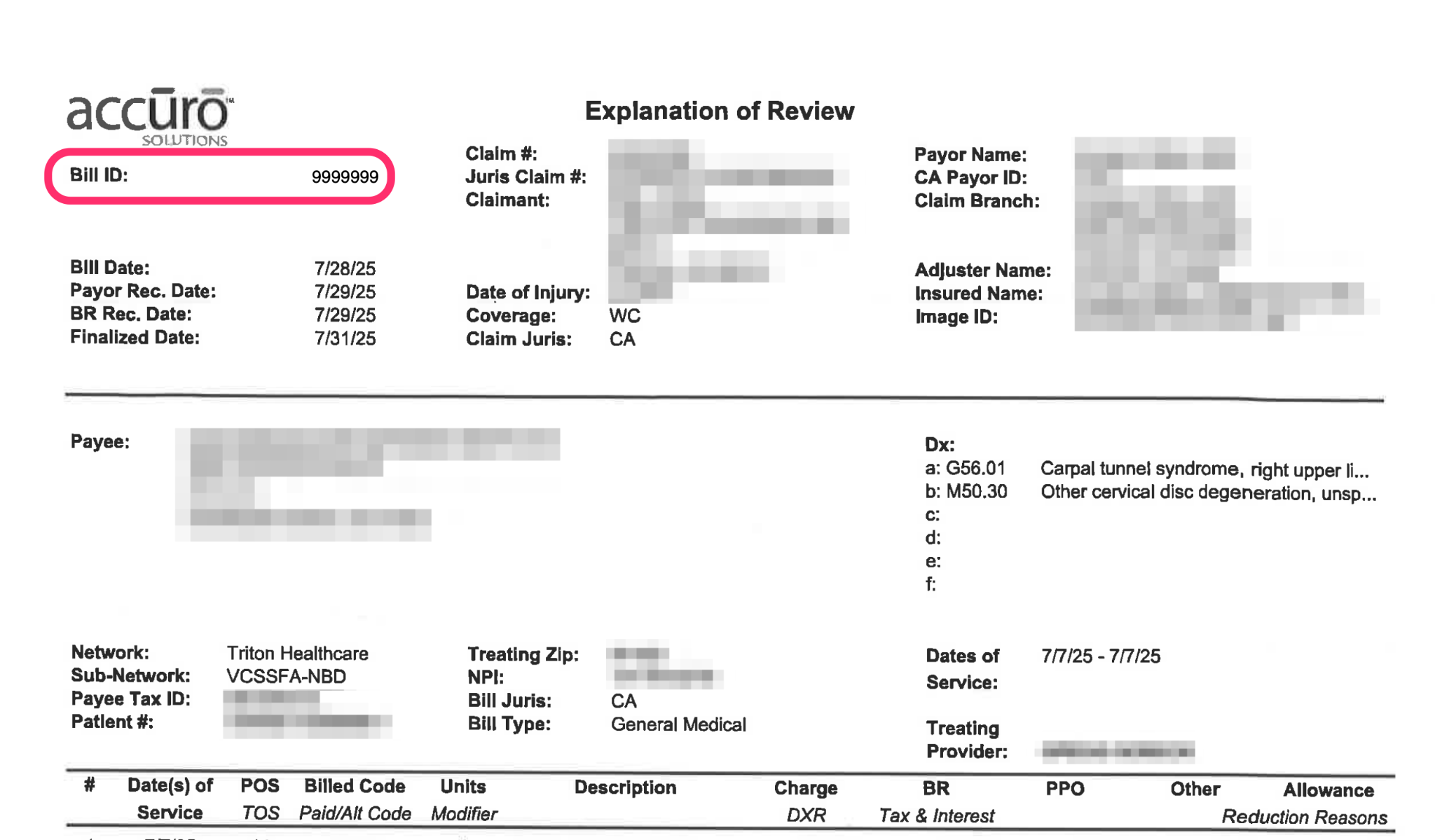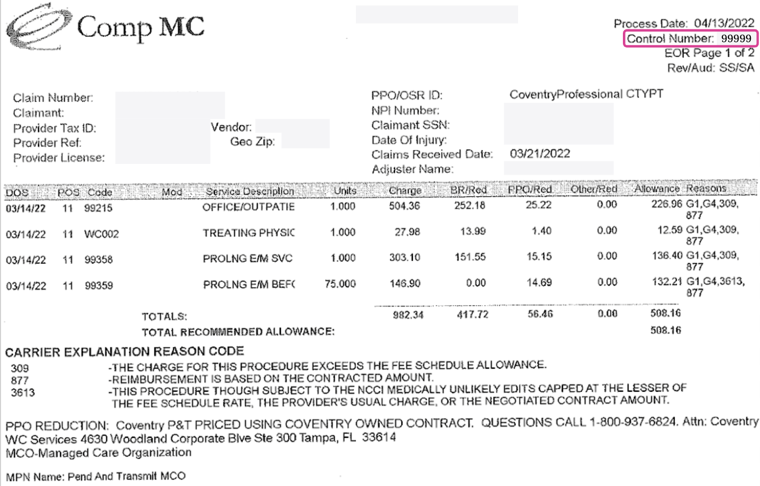 Examples of where to find the Payer Claim Control Number
