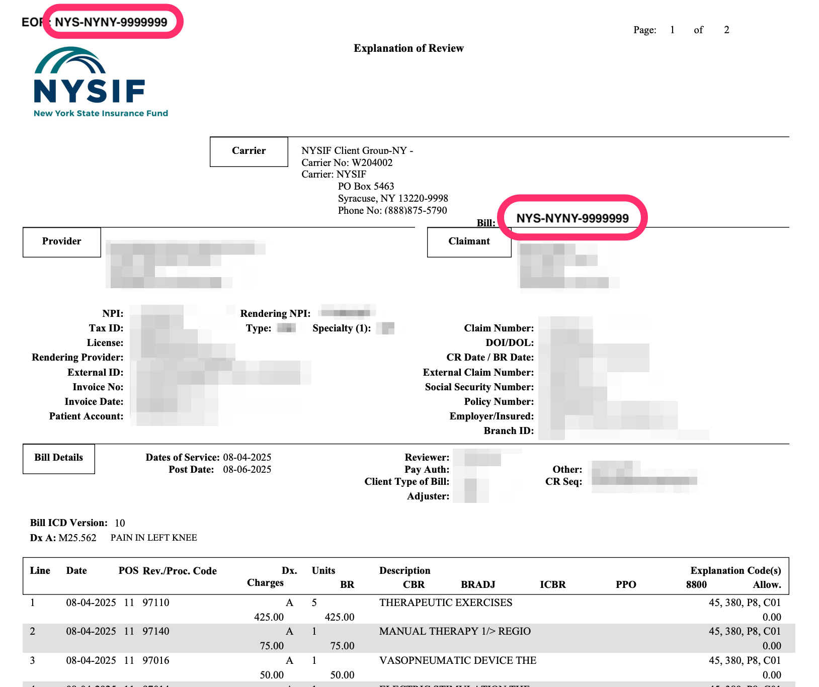 When submitting a Second Review appeal, the original Explanation of Review (EOR) is not a required document, because the Payer Claim Control Number allows the claims administrator to reference the EOR sent for the original bill.