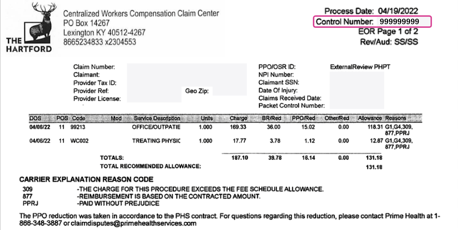 If the Payer Claim Control Number is not available on the EOR, use either: