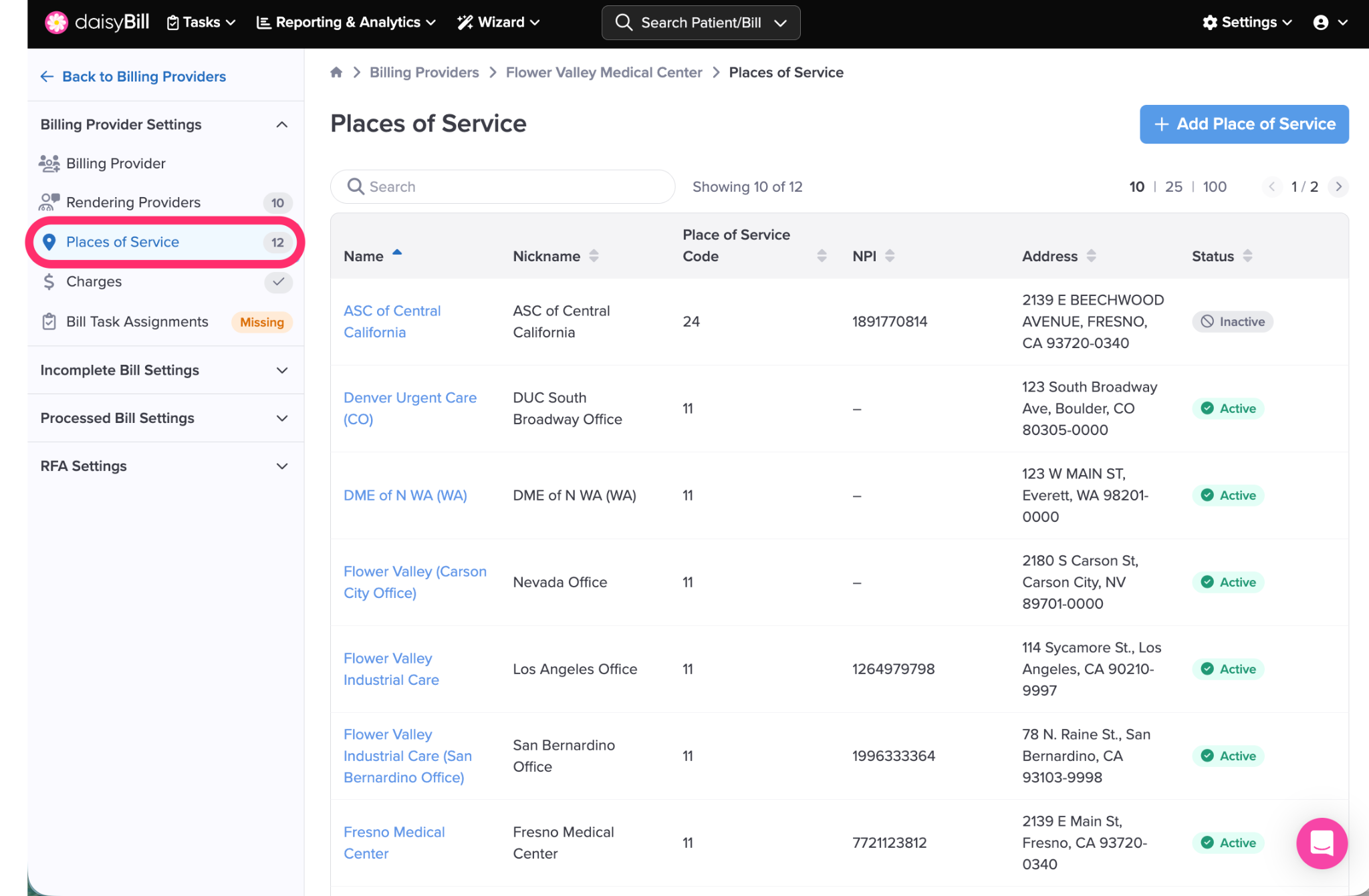 Step 2. Click the ‘Places of Service’ tab