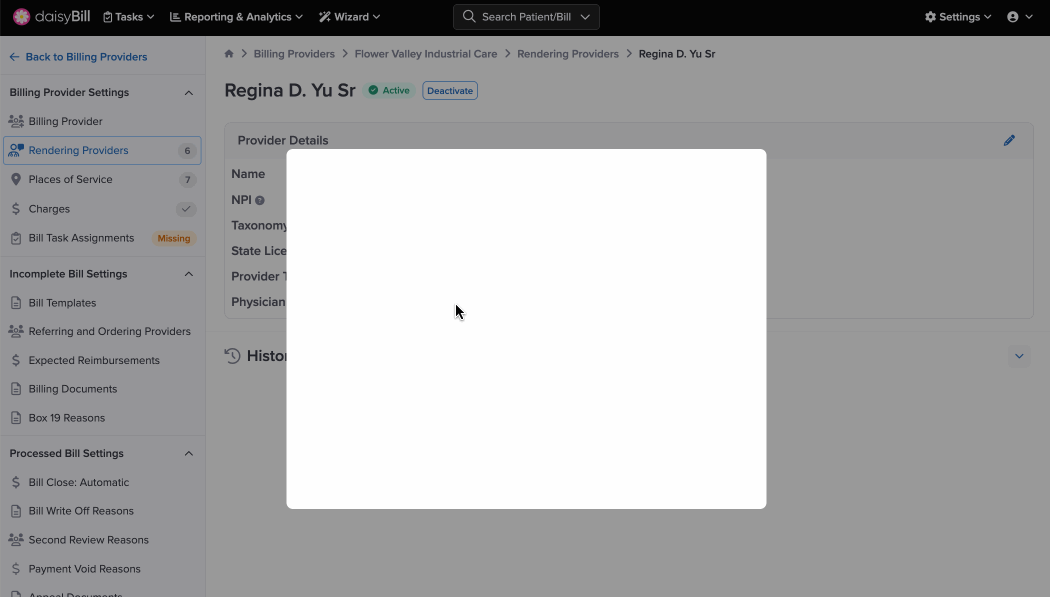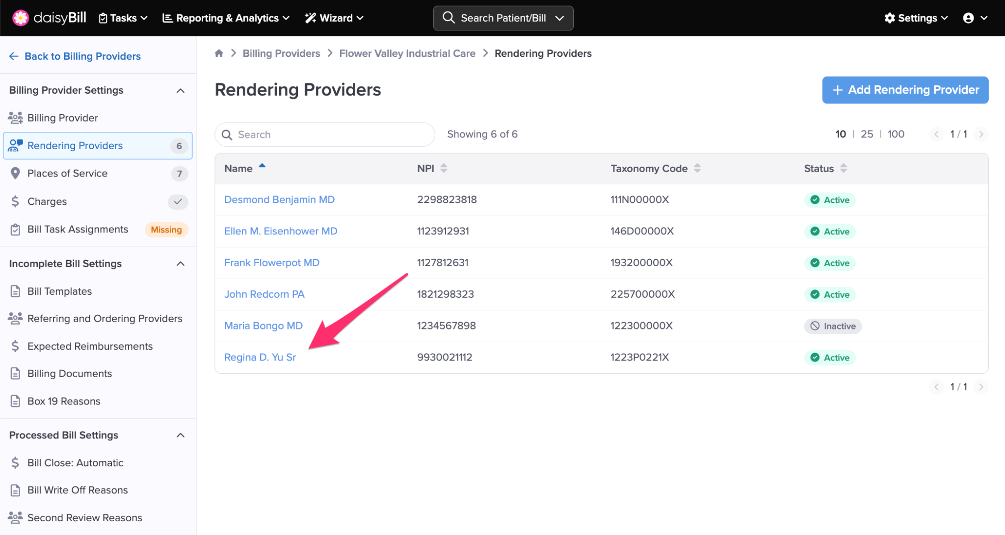 Step 3. Click the applicable Rendering Provider ‘Name’