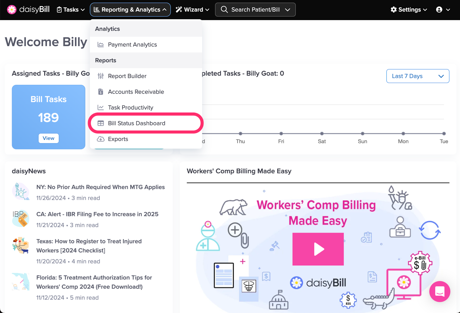 Reporting is daisyBill’s treasure chest of service, payment, and tasking metric information, including the ability to create custom reports.