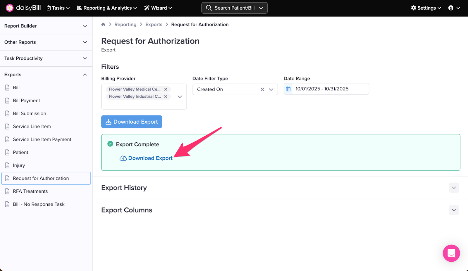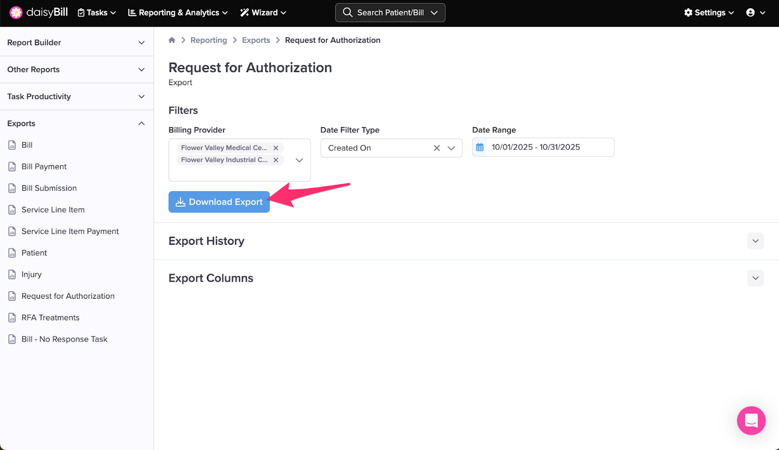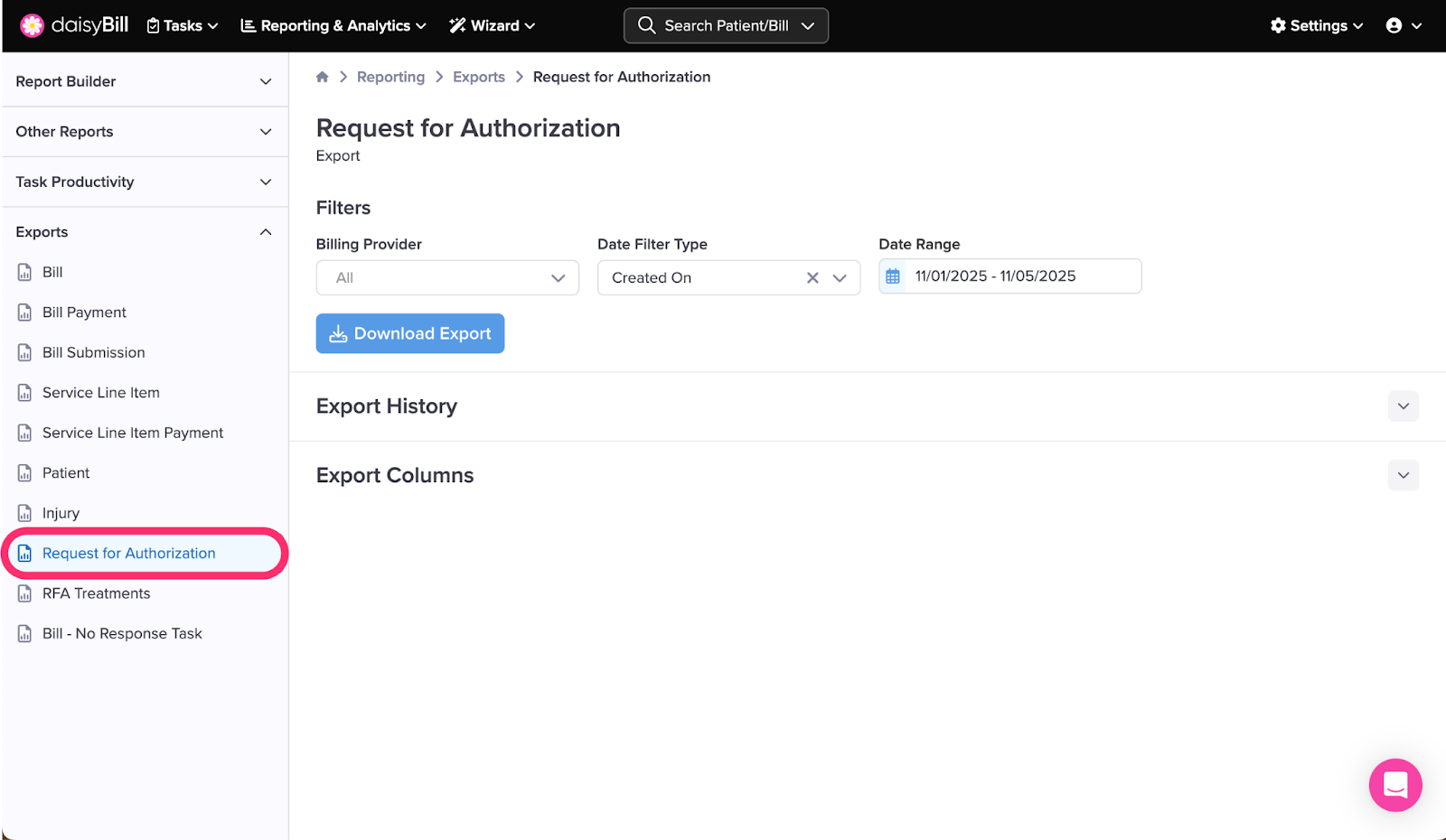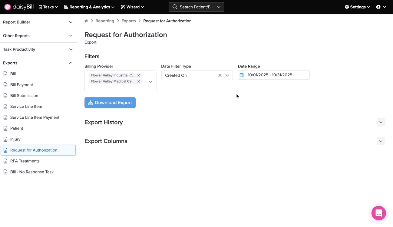 The Request for Authorization Export provides detailed information on all your Bill RFAs.