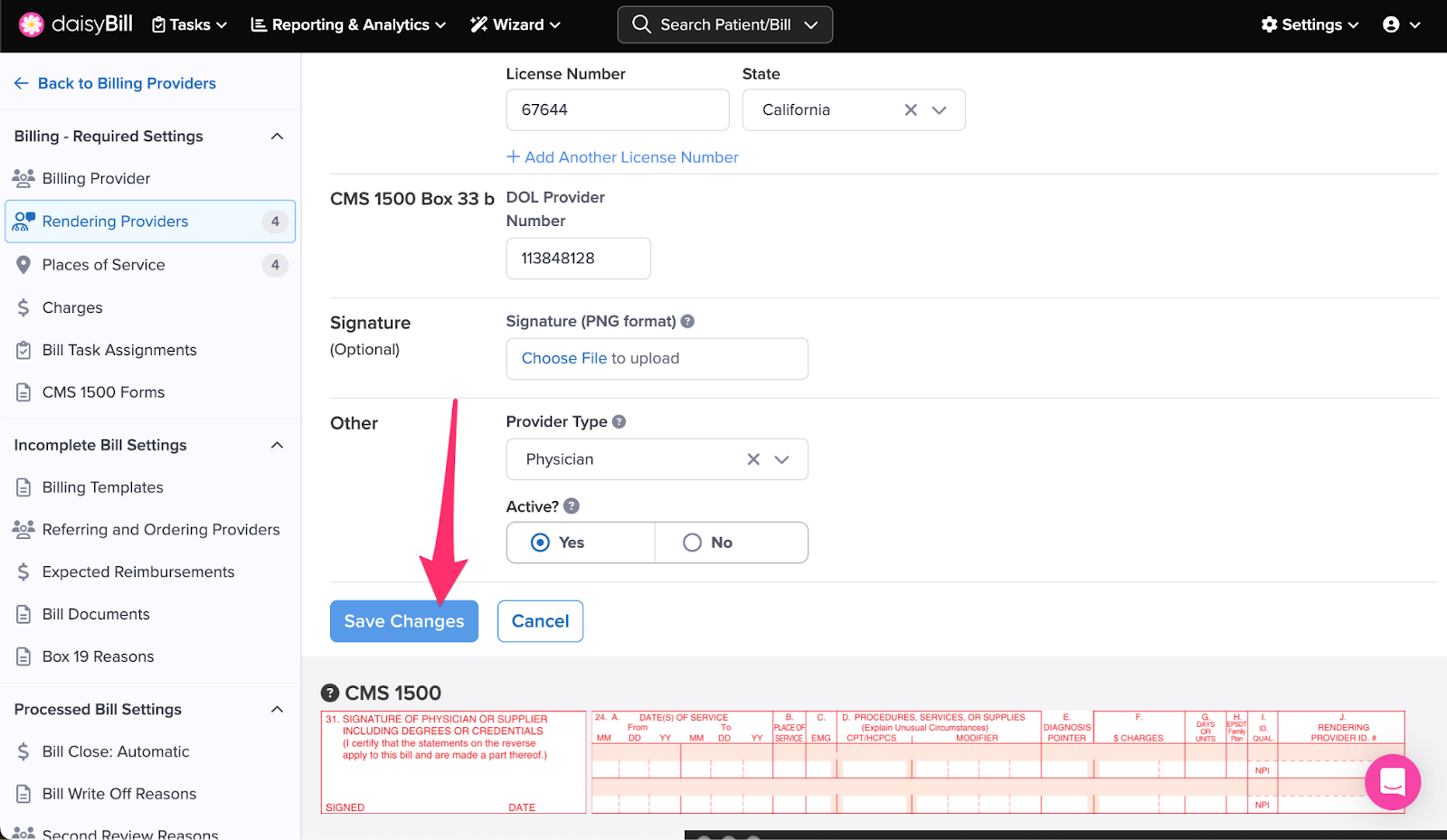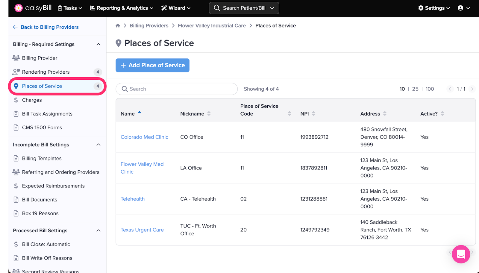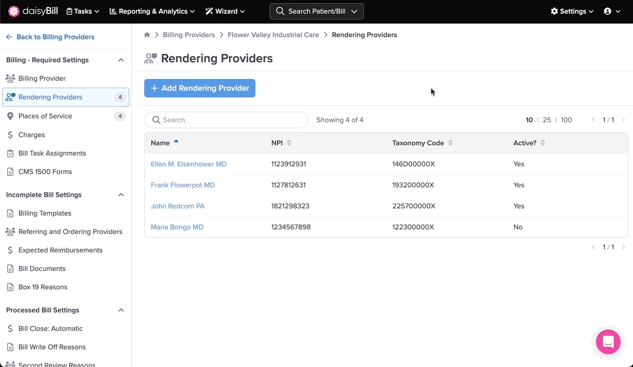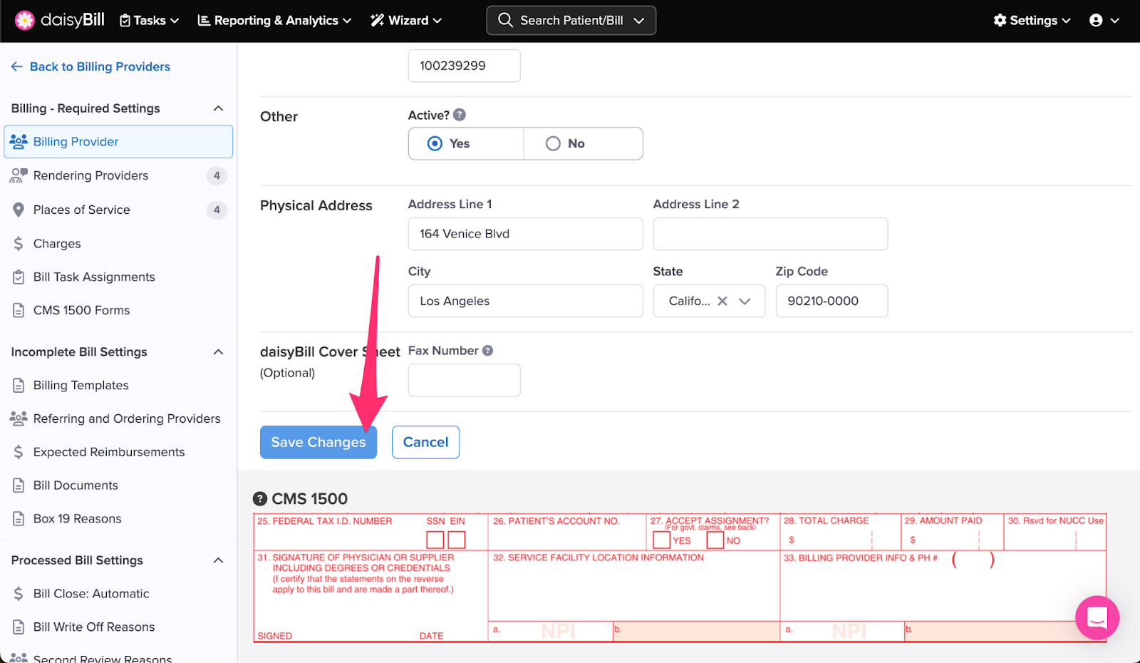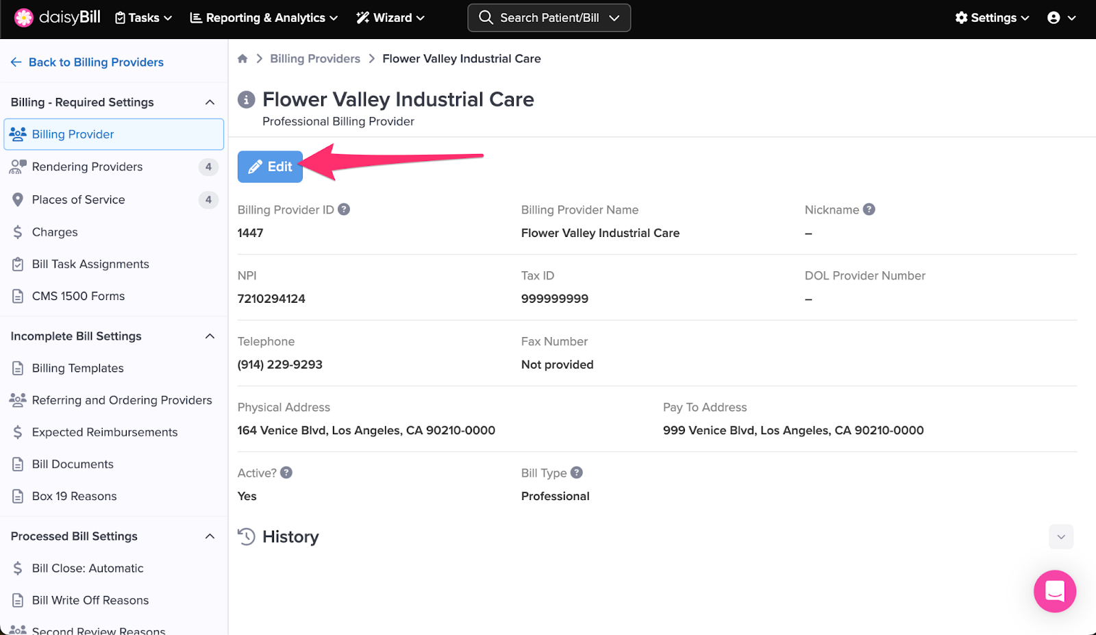 Step 1. From the navigation bar, click ‘Settings’, then click the name of the Billing Provider