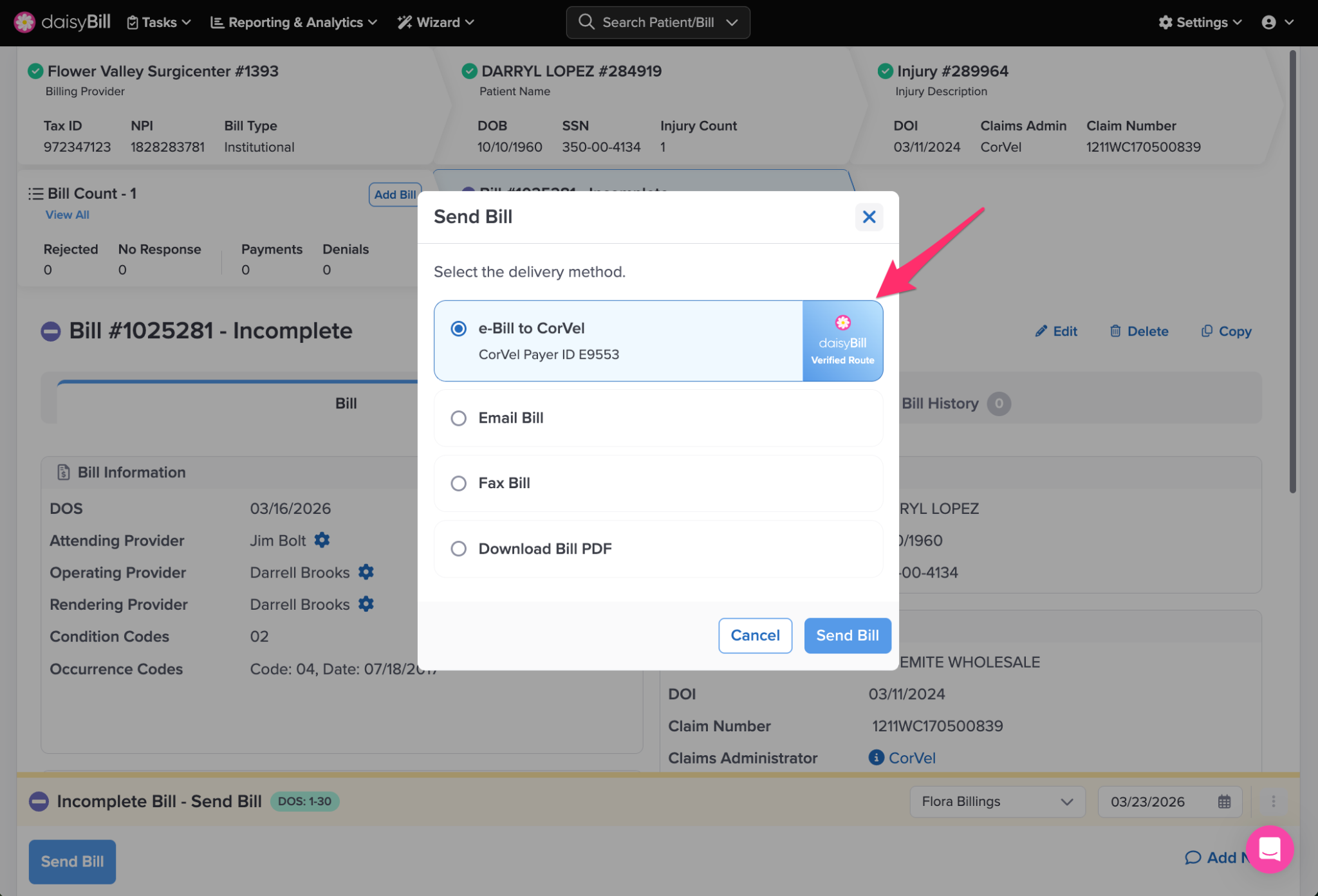 daisyBill immediately sends the Bill and supporting medical documents to the recipient. Note that this action cannot be undone.