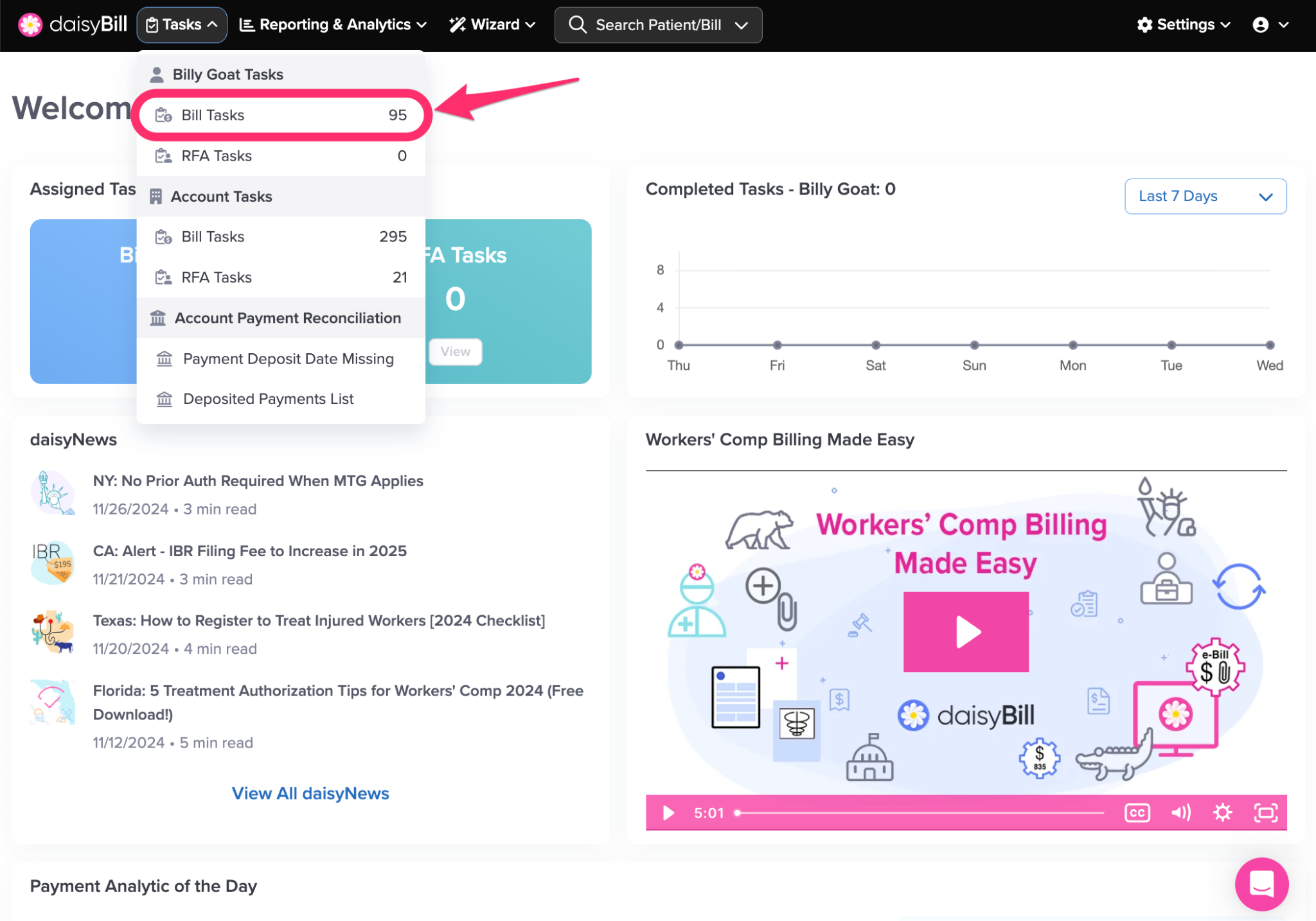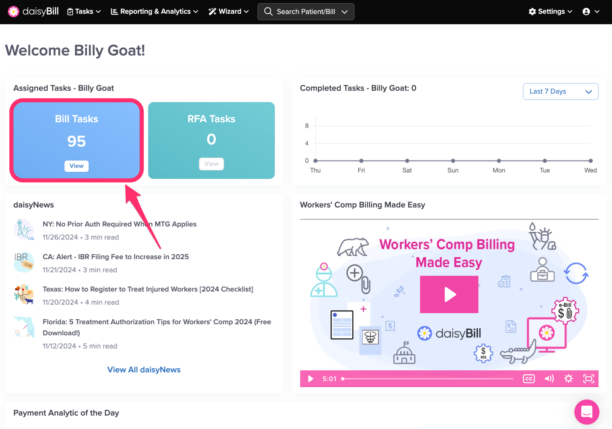 daisyBill technology monitors all bills as they progress through each Status of their Payment Cycle. When a bill requires attention, daisyBill assigns a Bill Task that your team needs to complete to move the Bill forward in its Payment Cycle.