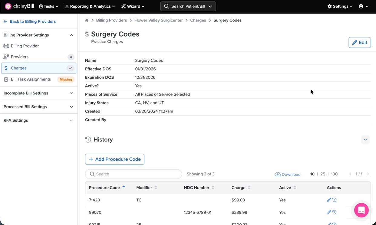 Step 13. To edit a ‘Practice Charge’, click ‘Edit’