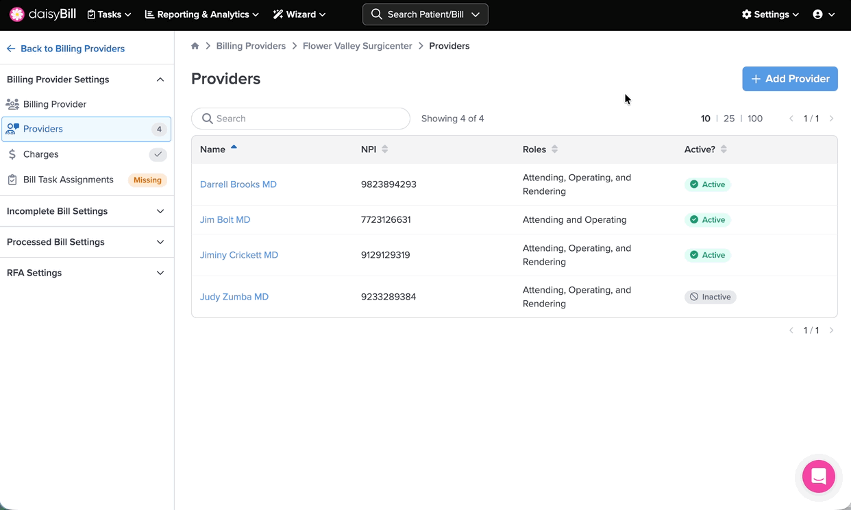 daisyBill makes it easy to view and add required information for each Provider associated with a Billing Provider.